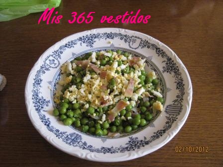 PREPARACIÓN: Cuece los guisantes durante unos 20 o 30 minutos y mientras pon el huevo a cocer durante unos 8 minutos. Cuando el huevo esté cocido corta la cocción metiéndolo debajo del agua para que se enfríe y así lo puedas pelar mejor. Una vez que los guisantes también estén cocidos escúrrelos en un escurre verduras.