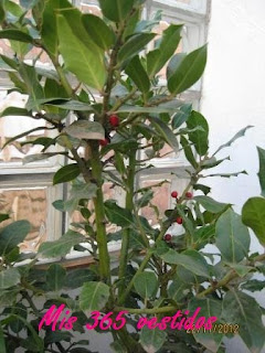 Hoy, después de unos diez años, el acebo sigue creciendo y ahora en invierno está con su características bolitas rojas adordándolo. Nunca le hemos cortado una ramita para hacer adornos para la casa y tampoco lo cargamos con luces ni ninguna otra cosa que le pueda molestar o hacer daño, sólo lo dejamos en la terraza para que esté tranquilico y pase tanto el invierno como el verano lo mejor posible.