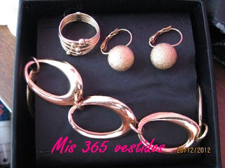 Y para darle un poco de brillo al conjunto me puse estos pendientes que me regaló una vecina, el anillo de oro de 7 vueltas y la pulsera de Angel Schlesser que me regalaron en un concurso de la revista Yo Dona.