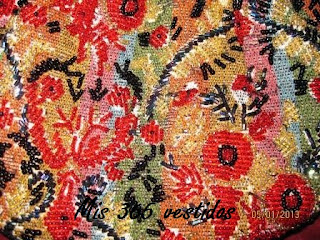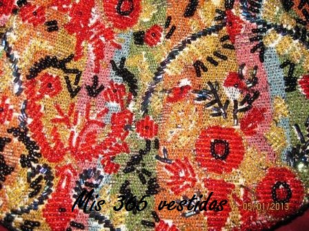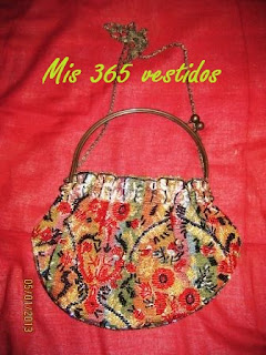 Los complementos que elegí eran de colores parecidos a los del bordado de la camiseta, como este bolso de tapicería bordado con lentejuelas.