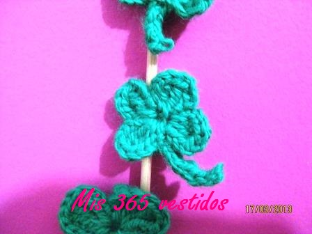 Mirad el regalo que me ha hecho mi madre este año, unos tréboles de tres y cuatro hojas hechos a ganchillo. ¡Me encantan!